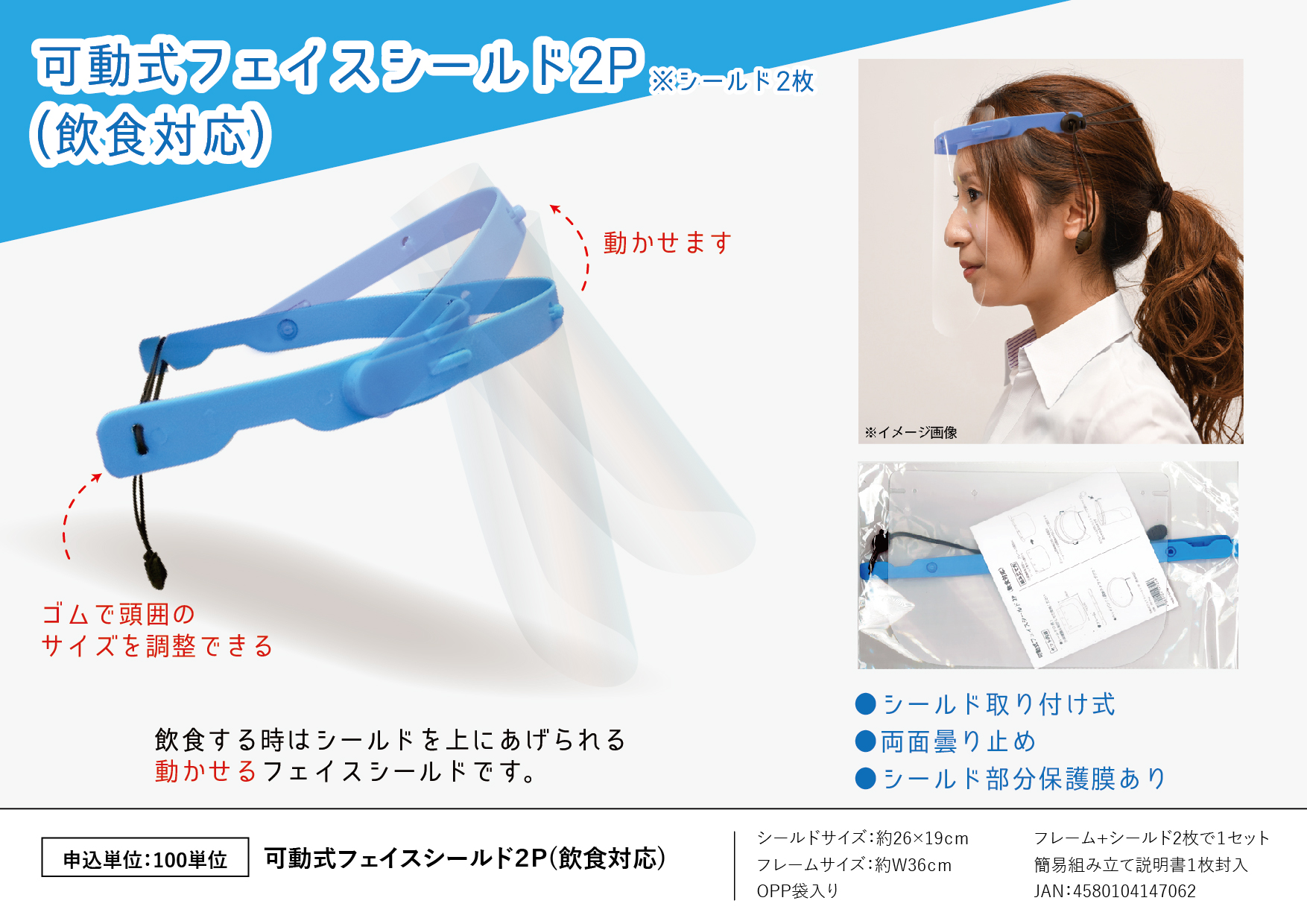 可動式フェイスシールド2P(飲食対応)