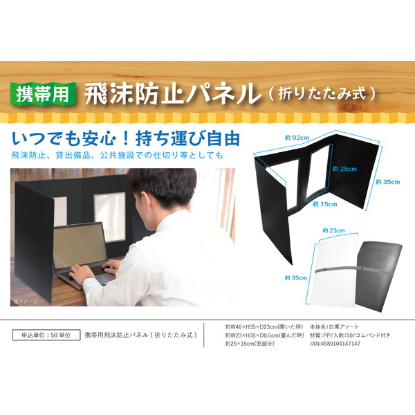 携帯用飛沫防止パネル(折りたたみ式)(2色アソート)