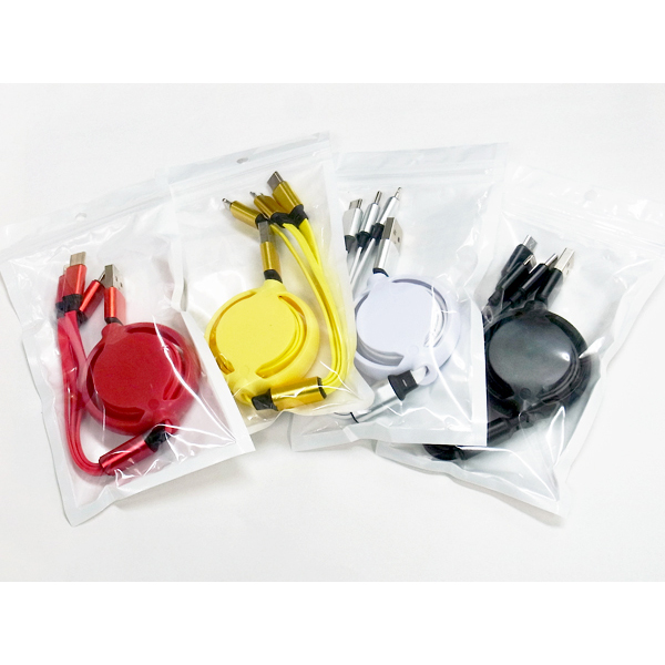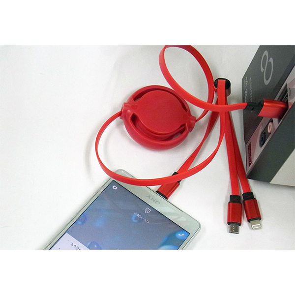 USB充電ケーブル3in1リール付(4色アソート)